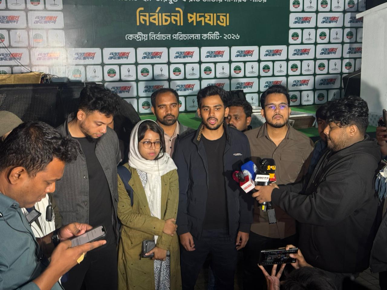 এর আগে রোববার রাজধানীর বাংলামোটরে এনসিপির অস্থায়ী দলীয় কার্যালয়ের সামনে নির্বাচনী পদযাত্রার শুরুতে সাংবাদিকদের সঙ্গে কথা বলেন দলটির মুখপাত্র ও নির্বাচন পরিচালনা কমিটির চেয়ারম্যান আসিফ মাহমুদ সজীব ভূঁইয়া।