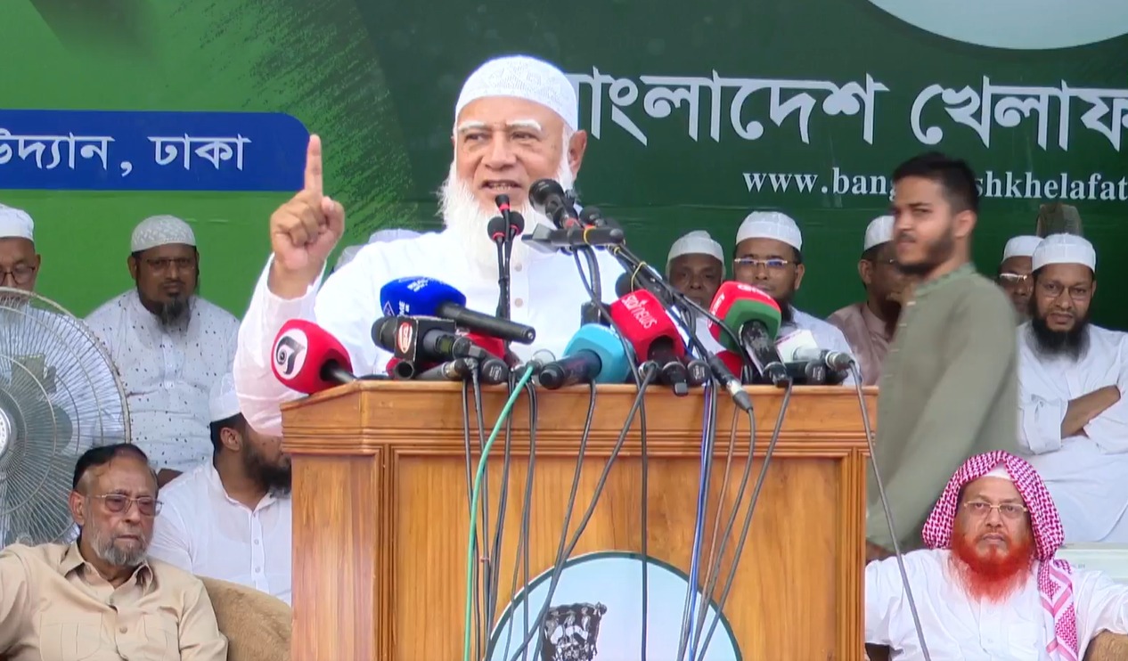গণভোটের রায় বাস্তবায়নের দাবিতে সোহরাওয়ার্দী উদ্যানে আয়োজিত গণসমাবেশ থেকে নতুন কর্মসূচি ঘোষণা করে সরকারকে ‘আখেরি পয়গাম’ বা ‘শেষ বার্তা’ দিয়েছেন বাংলাদেশ খেলাফত মজলিসের আমির মাওলানা মামুনুল হক।