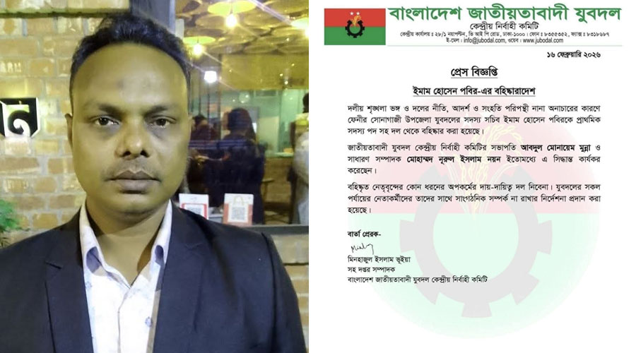 আজ সোমবার (১৬ ফেব্রুয়ারি) বিকেলে যুবদলের কেন্দ্রীয় সহ-দপ্তর সম্পাদ মিনহাজুল ইসলাম ভূঁইয়ার সই করা বিজ্ঞপ্তিতে বহিষ্কারের কথা জানানো হয়।