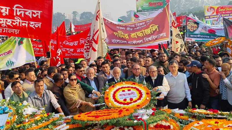 মহান বিজয় দিবস উপলক্ষে সাভারের জাতীয় স্মৃতিসৌধ ও শেরেবাংলা নগরে সাবেক রাষ্ট্রপতি জিয়াউর রহমানের সমাধিতে পুষ্পস্তবক অর্পণ করেছে বাংলাদেশ জাতীয়তাবাদী দল (বিএনপি)।