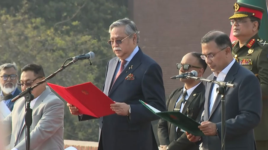 দীর্ঘ দুই যুগ পর বিএনপির নেতৃত্বে সরকার গঠিত হলো। আজ মঙ্গলবার (১৭ ফেব্রুয়ারি) জাতীয় সংসদ ভবনের দক্ষিণ প্লাজায় প্রধানমন্ত্রী হিসেবে শপথ নেন বিএনপির চেয়ারম্যান তারেক রহমান। এরপর রাষ্ট্রপতি মো. সাহাবুদ্দিন নতুন মন্ত্রিসভার অন্য সদস্যদেরও শপথ পড়ান।