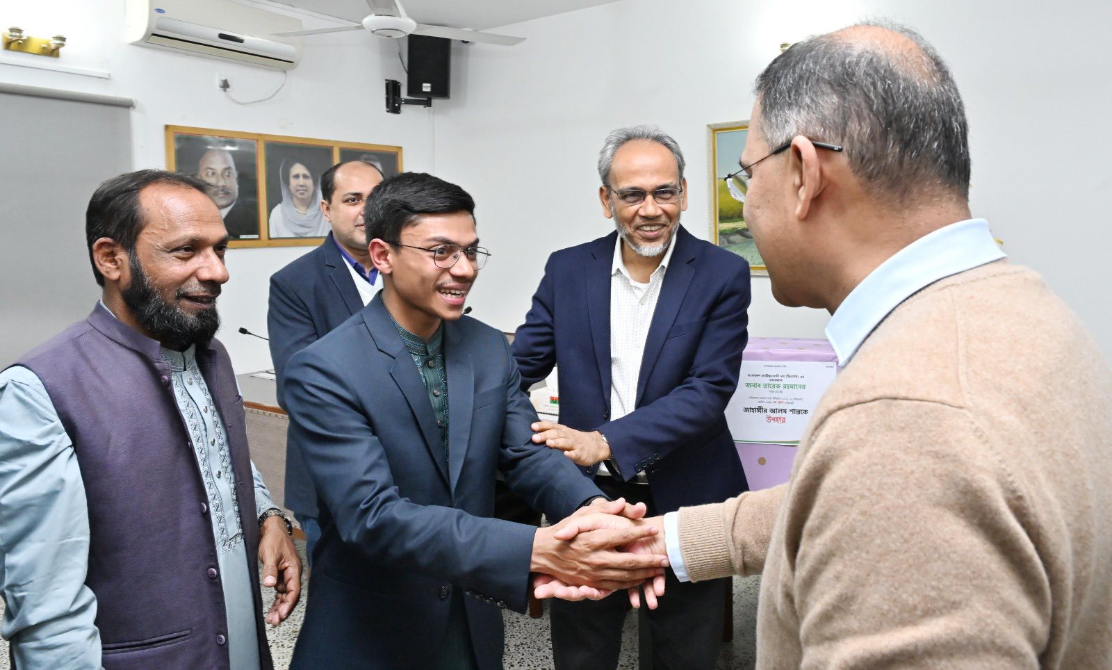 ২০২৫-২৬ শিক্ষাবর্ষের মেডিকেল ও ডেন্টাল ভর্তি পরীক্ষায় সারা দেশে প্রথম স্থান অর্জন করা জাহাঙ্গীর আলম শান্তকে উপহার দিয়েছেন বিএনপির চেয়ারম্যান তারেক রহমান। বুধবার (১৪ জানুয়ারি) রাজধানীর গুলশানে বিএনপি চেয়ারম্যানের রাজনৈতিক কার্যালয়ে শান্তর হাতে ক্রেস্ট তুলে দিয়ে তাকে শুভেচ্ছা জানান তারেক রহমান।