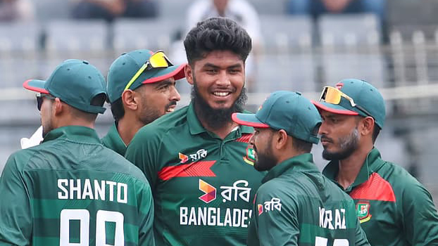 শরিফুল ১০ ওভারে মাত্র ২৭ রান দিয়ে পেয়েছেন ২ উইকেট। উইকেট ২ পেলেও তাসকিন আহমেদ ১০ ওভারে দিয়েছেন ৫০ রান। নাহিদ রানা ও অধিনায়ক মেহেদি হাসান মিরাজ একটি করে উইকেট পেয়েছেন।