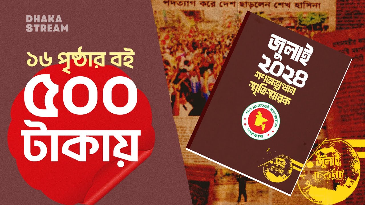 ১০০ কিংবা ২০০ নয়, ১৬ পৃষ্ঠার একটি বইয়ের দাম ৫০০ টাকা। বইটির নাম ‘জুলাই ২০২৪ গণঅভ্যুত্থান স্মৃতিস্মারক’। বইটি এখনো প্রকাশ করা হয়নি কিন্তু বইটির শুভেচ্ছা মূল্য ধরা হয়েছে ৫০০ টাকা। সরকারের বিভিন্ন দপ্তরে ঘুরছে একটি ‘অত্যন্ত জরুরি’ চিঠি। নিশ্চয়ই অবাক হচ্ছেন, চলুন বিস্তারিত জেনে নেই স্ট্রিম এক্সপ্লেইনারে