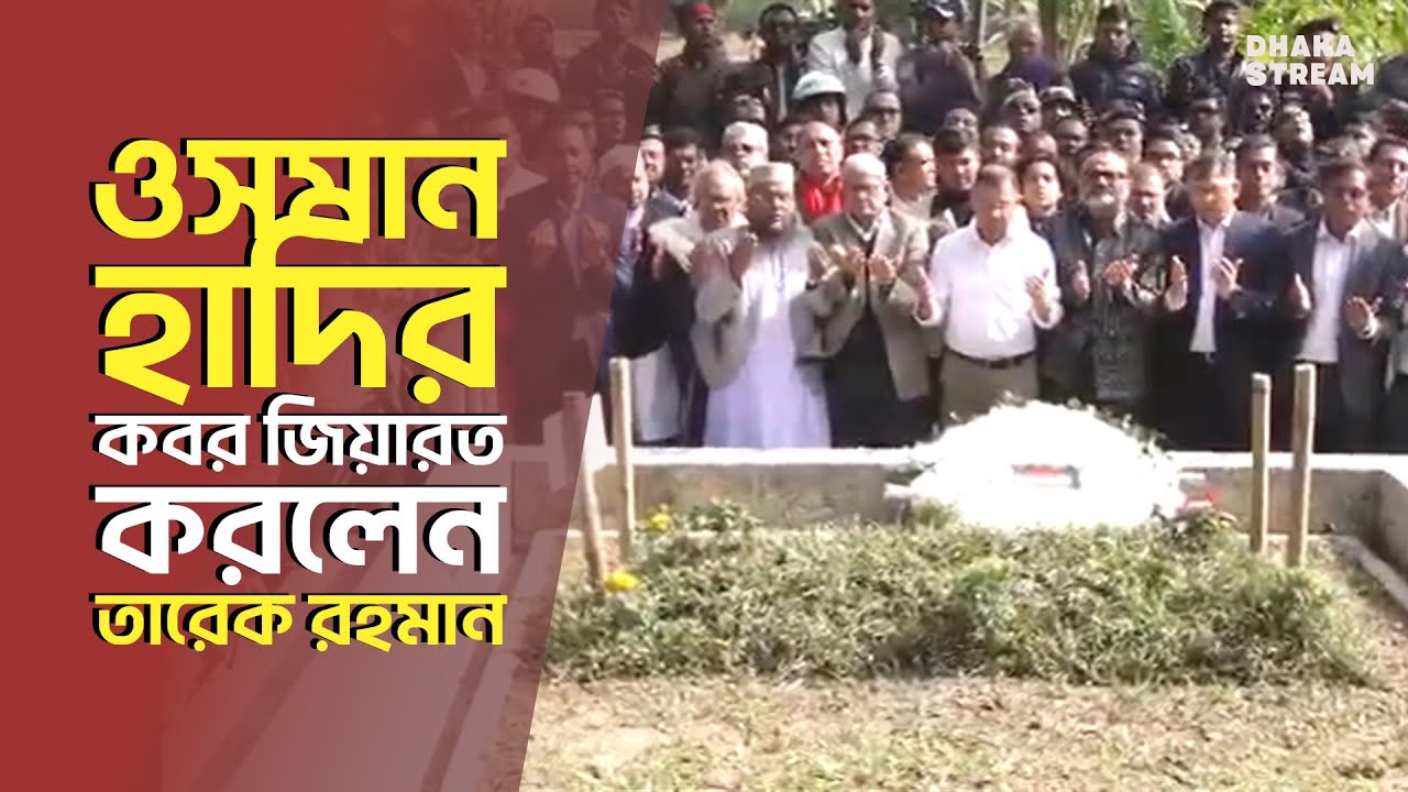 বাংলাদেশ জাতীয়তাবাদী দলের (বিএনপির) ভারপ্রাপ্ত চেয়ারম্যান তারেক রহমান আততায়ীর গুলিতে নিহত, ইনকিলাব মঞ্চের আহ্বায়ক শরিফ ওসমান হাদির কবর জিয়ারত করেছেন। আজ শনিবার (২৭ ডিসেম্বর) সকাল ১১টার পরে তারেক রহমান ঢাকা বিশ্ববিদ্যালয় এলাকায় জাতীয় কবি কাজী নজরুল ইসলামের সমাধির পাশে ওসমান হাদির কবরে পৌঁছান।