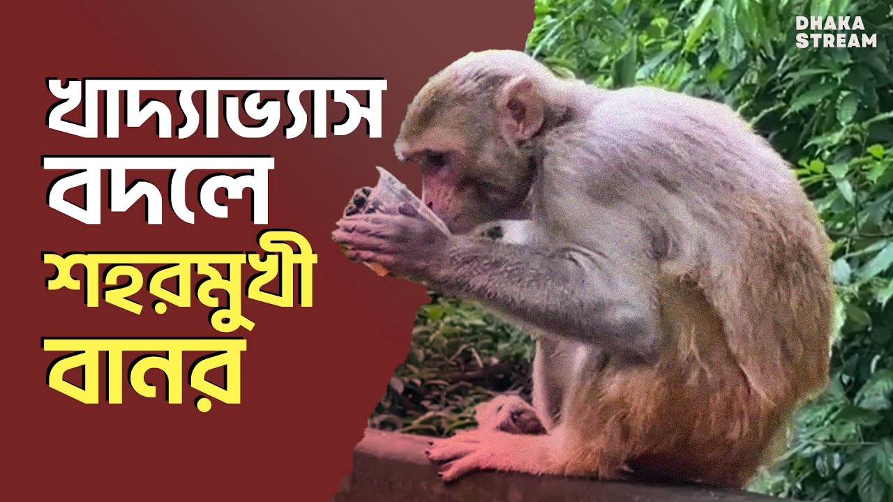বনের খাবার রেখে চা, চিপস,বিস্কুট, কলা খাচ্ছে বানর