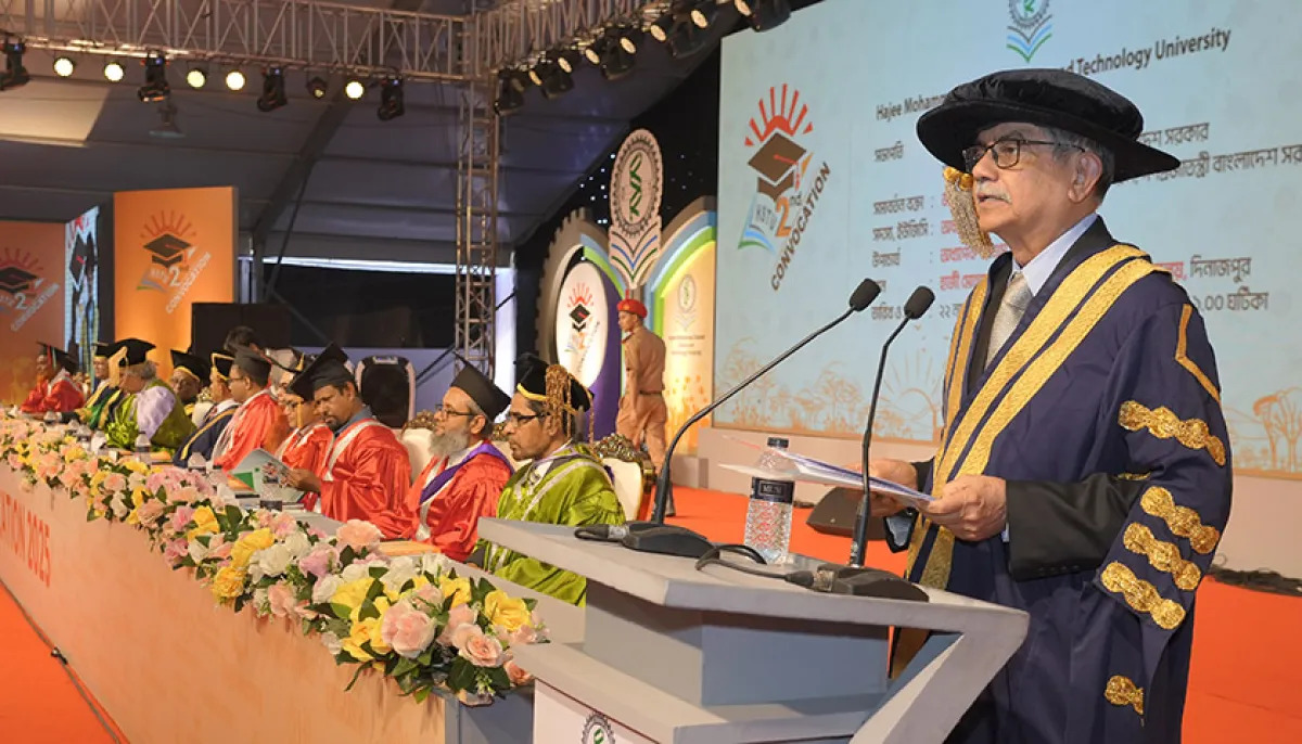 আজ শনিবার (২২ নভেম্বর) দিনাজপুরে হাজী মোহাম্মদ দানেশ বিজ্ঞান ও প্রযুক্তি বিশ্ববিদ্যালয়ের (হাবিপ্রবি) দ্বিতীয় সমাবর্তনে অংশ নিয়ে তিনি এসব কথা বলেন।