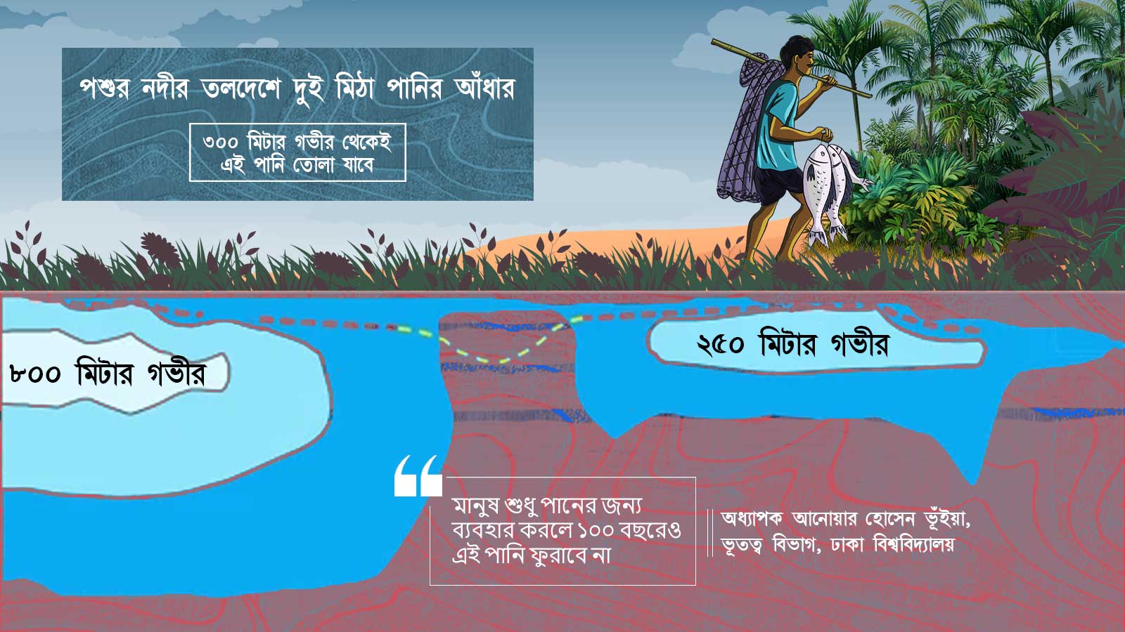 মিঠা পানিটুকু মাটির নিচে আবদ্ধ (ট্র্যাপড) অবস্থায় রয়েছে। লোনা পানির সঙ্গে এর সরাসরি সংযোগ নেই। ফলে পানি উত্তোলনে তাৎক্ষণিক লোনা পানি ঢুকে পরিবেশের ভারসাম্য নষ্ট হওয়ার শঙ্কা কম