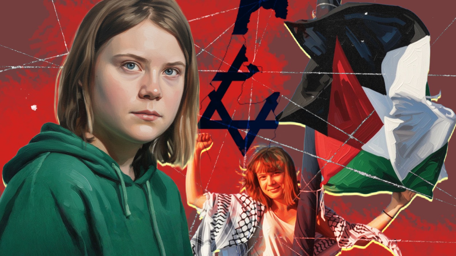 গত কয়েক বছরে থুনবার্গ ফিলিস্তিনের পক্ষে ক্রমবর্ধমানভাবে আন্দোলন করছেন। তিনি এটিকে বৈশ্বিক ন্যায় এবং জলবায়ু সংকটের সঙ্গে যুক্ত মনে করেন। তিনি ফিলিস্তিনের পক্ষে র্যালিতে অংশ নিয়েছেন, কেফিয়াহ (ফিলিস্তিনের ঐতিহ্যবাহী স্কার্ফ) পরেছেন। গাজায় ইসরায়েলের সামরিক কর্মকাণ্ডের সমালোচনাও করেছেন, বিশেষ করে ২০২৩ সালের অক্টোবরে যুদ্ধ শুরুর পর।