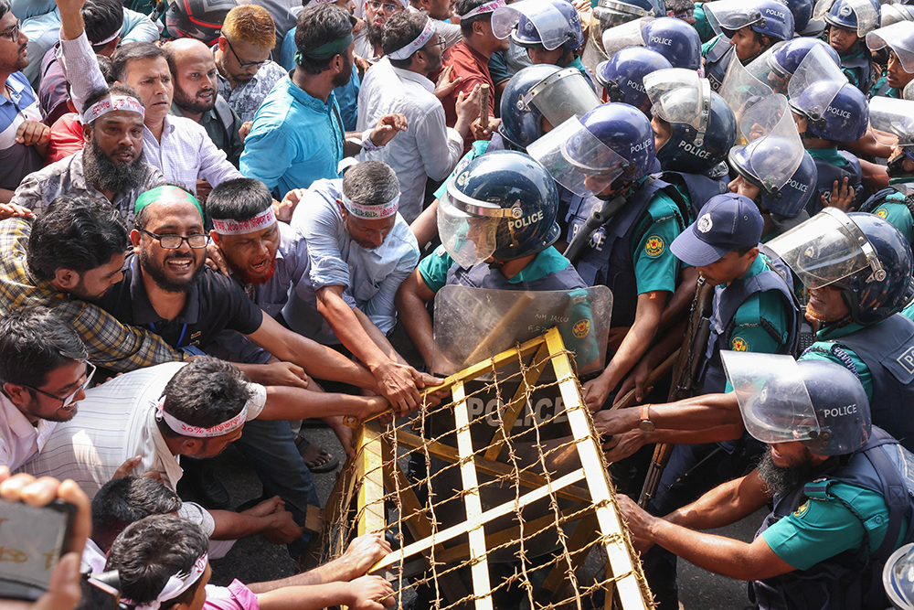 পুলিশের ব্যারিকেড সরিয়ে শাহাবাগ মোড়ে যাচ্ছেন শিক্ষকেরা