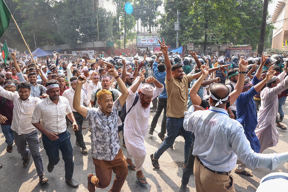 প্রজ্ঞাপন জারি না হওয়ায় তিন দফা দাবিতে শাহবাগে পুলিশের ব্যারিকেড সরিয়ে ঢুকে পড়ে আন্দোলনরত বেসরকারি শিক্ষাপ্রতিষ্ঠানের এমপিওভুক্ত শিক্ষকেরা। এসময় তাঁরা শাহাবাগের মোড় বন্ধ করে দিলে যান চলাচল বন্ধ হয়ে যায়। দাবি পূরণ না হওয়া পর্যন্ত আন্দোলন চালিয়ে যাওয়ার হুঁশিয়ারি দেন তাঁরা।