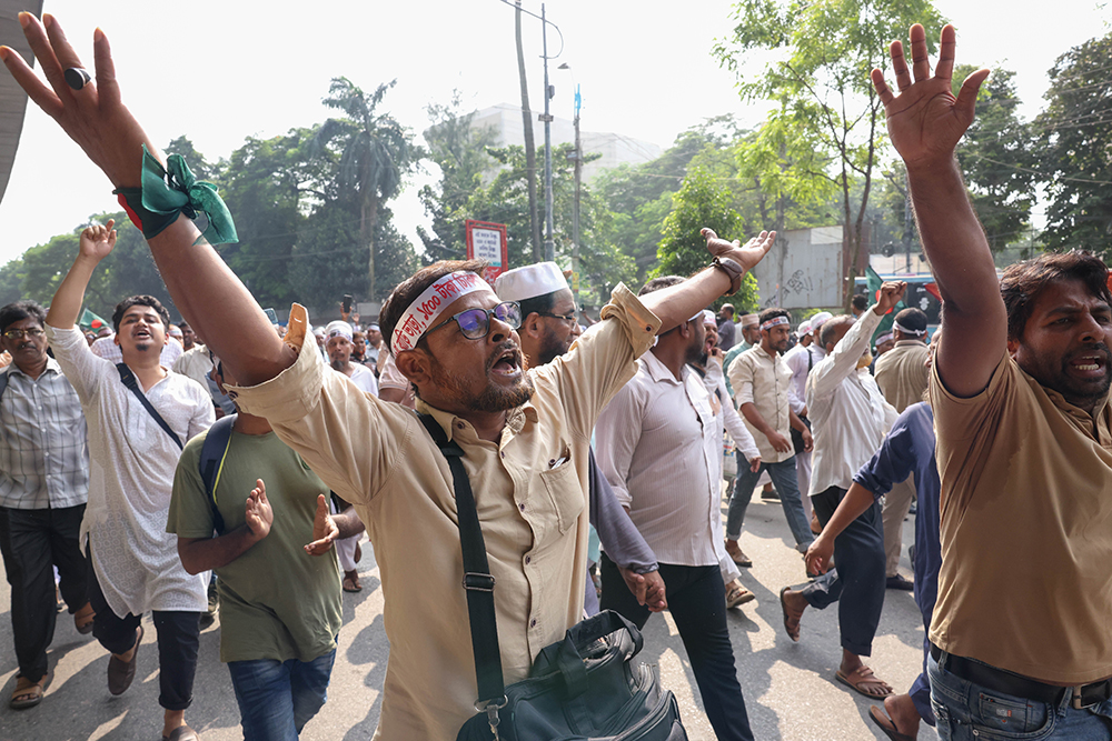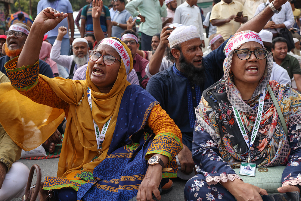 তিন দফা দাবিতে স্লোগান দেন তাঁরা