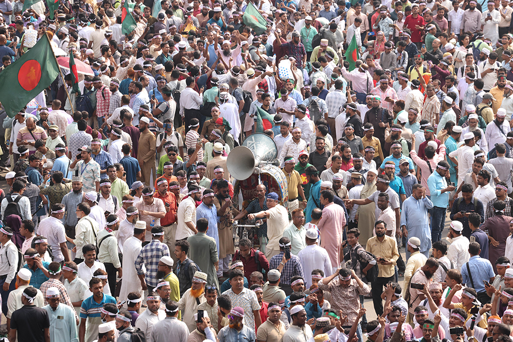 স্লোগান দেবার জন্য শাহাবাগ মোড়ে মাইক নিয়ে আসা হয়েছে