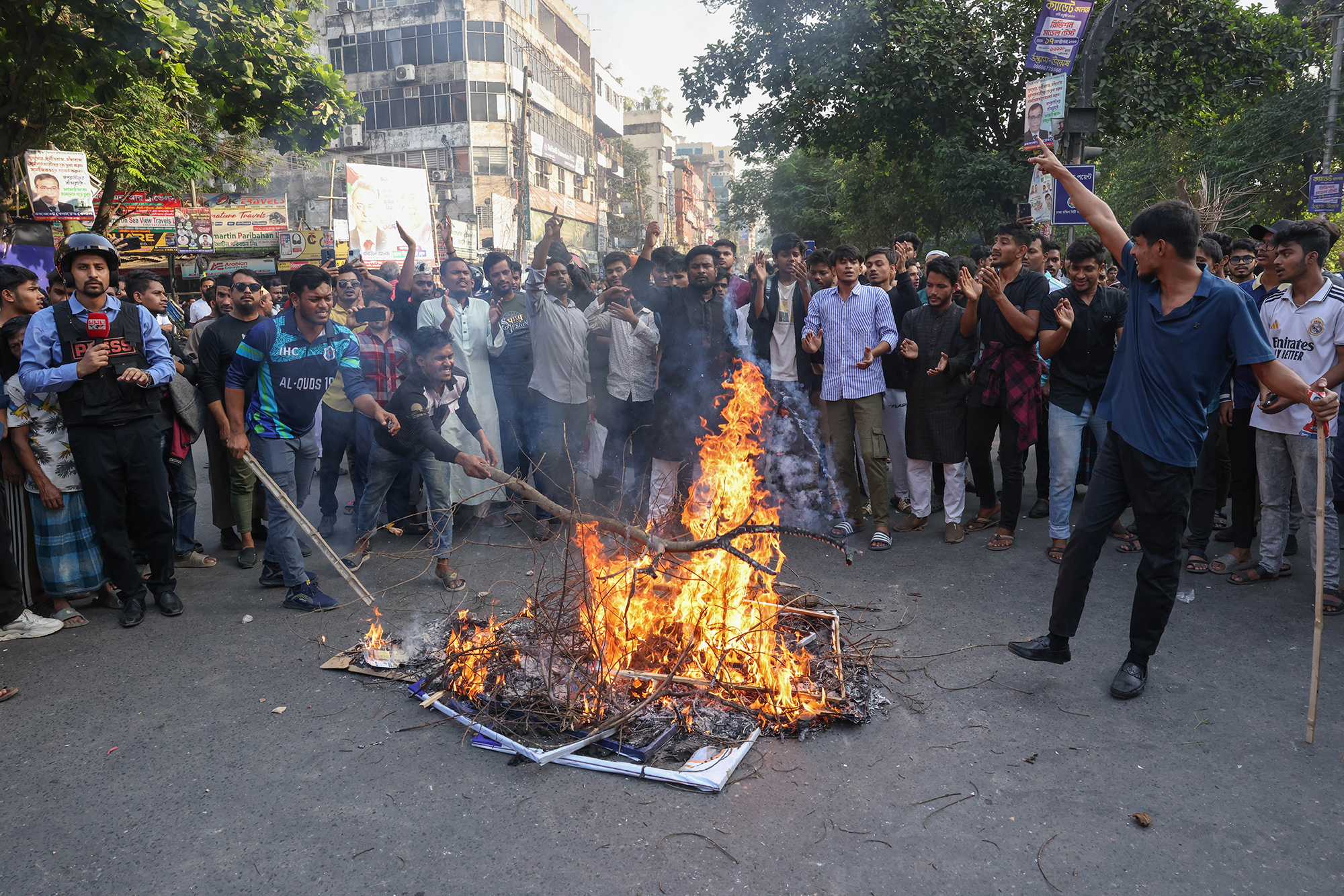 ধানমন্ডি ৩২ নম্বরে আগুন জ্বেলে বিক্ষোভ করছে ছাত্রজনতা