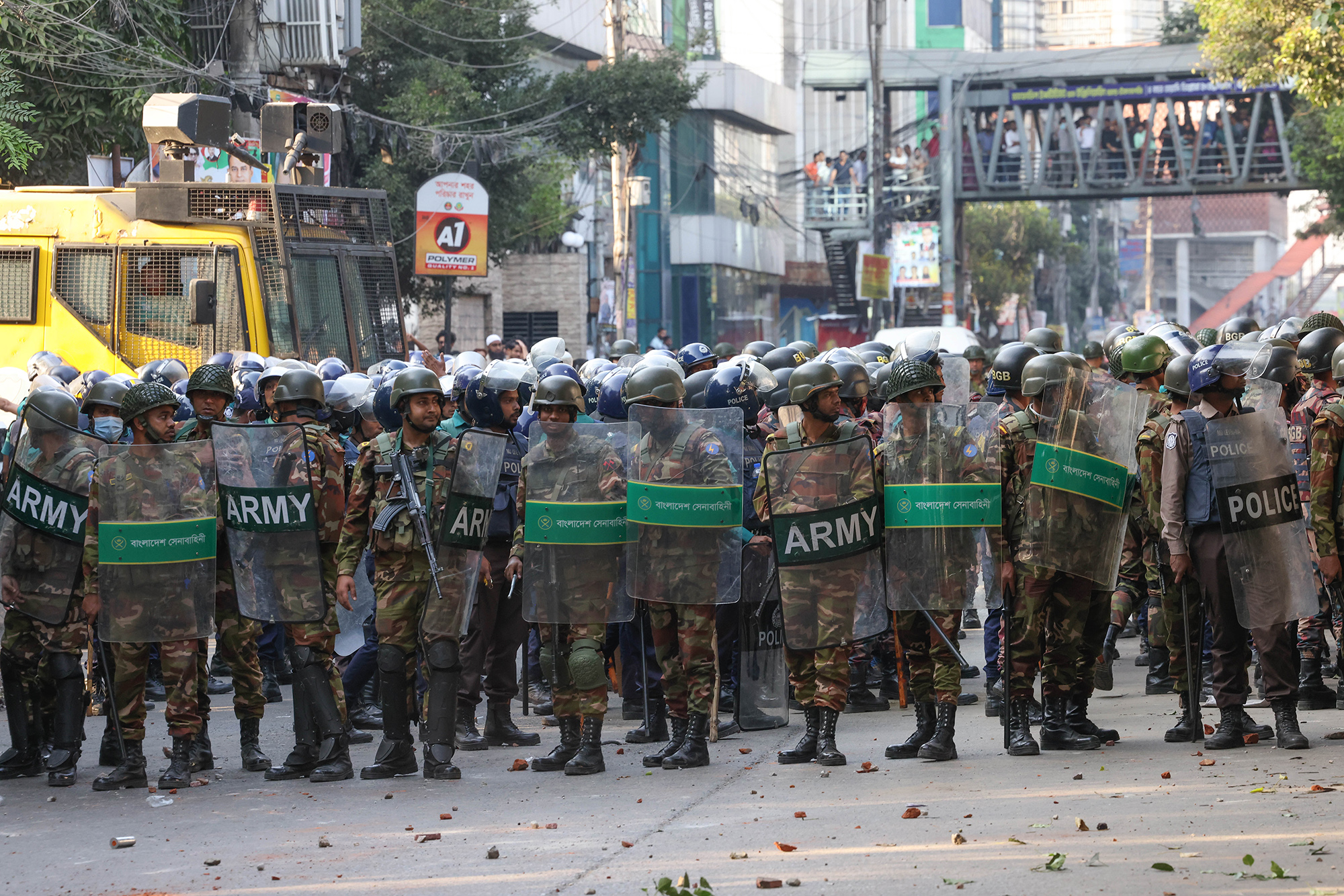 পরে তাঁদের ছত্রভঙ্গ করে দেয় সেনাবাহিনী ও পুলিশ। এরপর বিক্ষোভকারীরা বিভিন্ন ভাগে ভাগ হয়ে দফায় দফায় ৩২ নম্বর সড়কে যাওয়ার চেষ্টা করে। পরে পুলিশ সাউন্ড গ্রেনেড মেরে বিক্ষোভকারীদের ছত্রভঙ্গের চেষ্টা করে। একপর্যায়ে বিক্ষোভকারীরা ছত্রভঙ্গ হয়ে যায়। এ ঘটনাকে কেন্দ্র করে পুরো এলাকায় উত্তেজনাকর পরিস্থিতি তৈরি হয়।