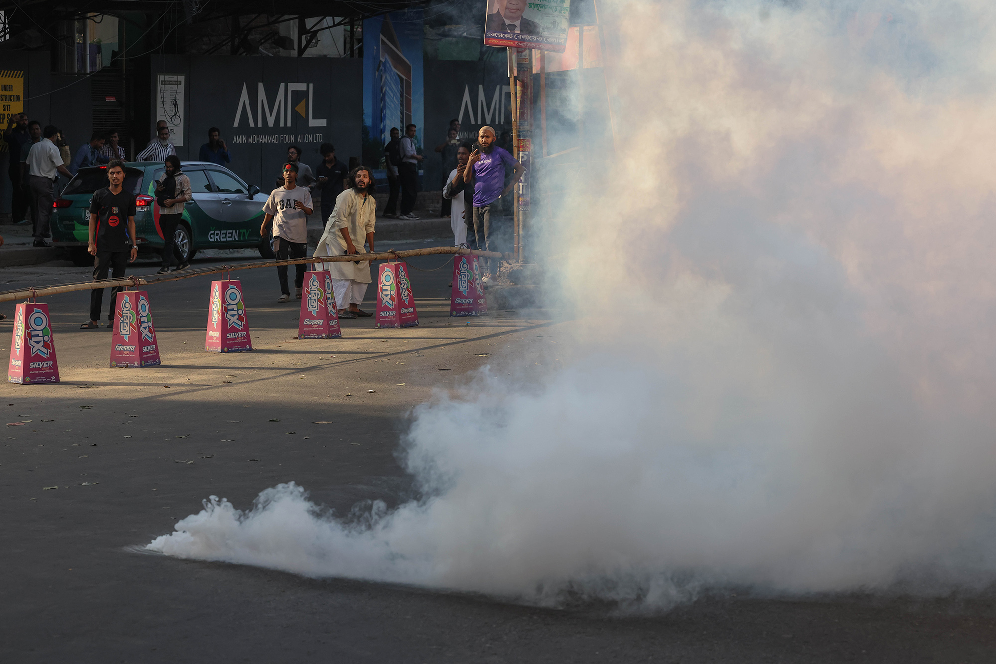পুলিশের টিয়ার গ্যাস নিক্ষেপ