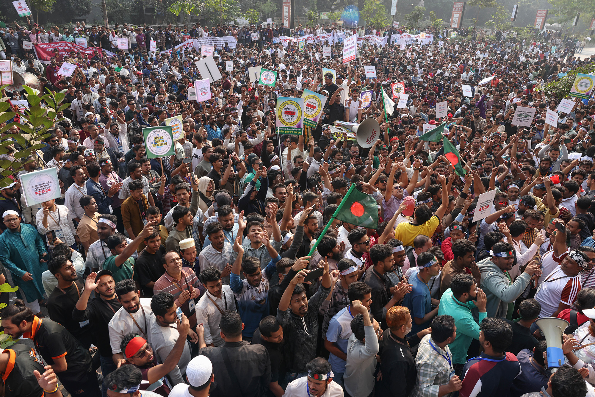প্ল্যাকার্ড হাতে এক আন্দোলনকারী