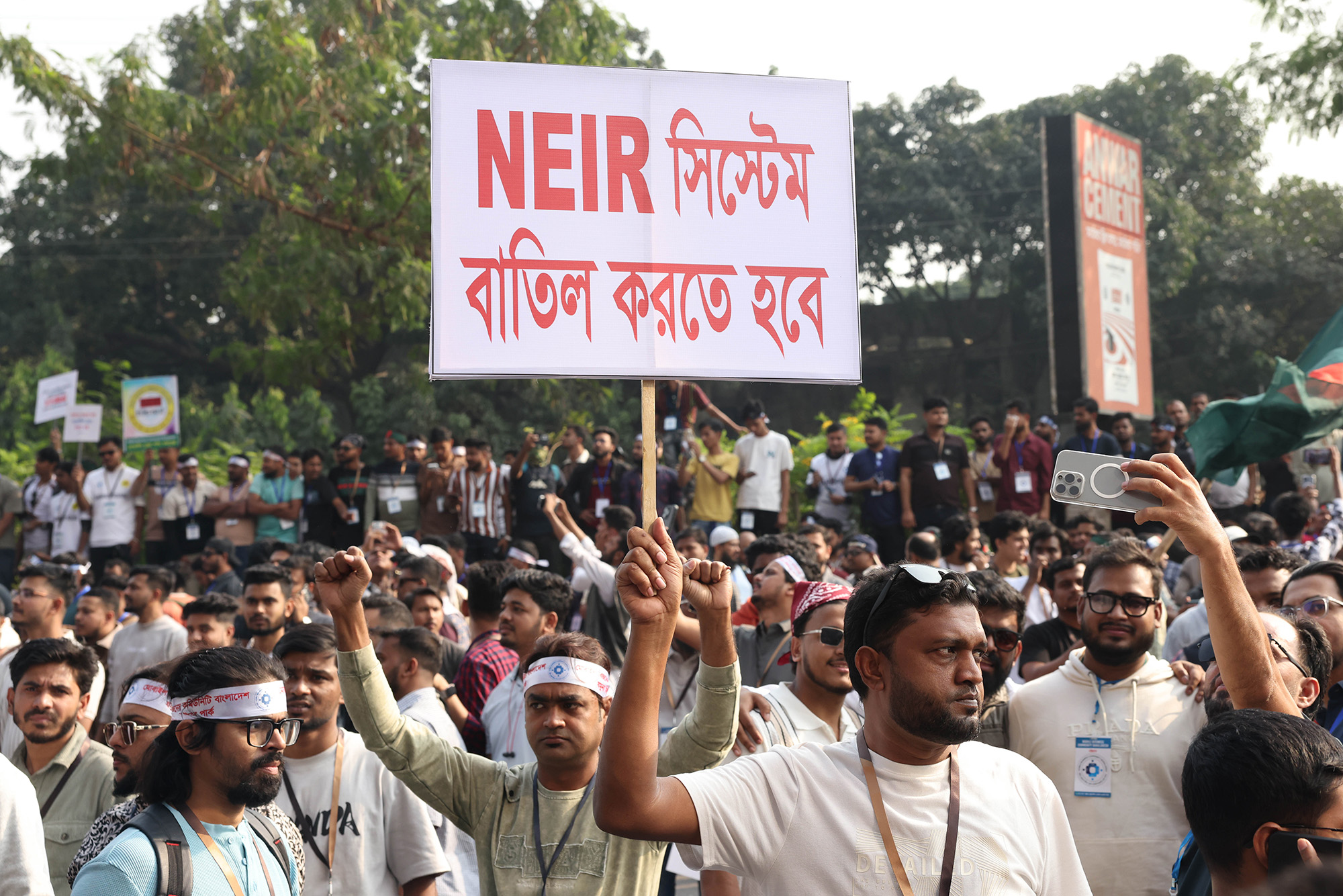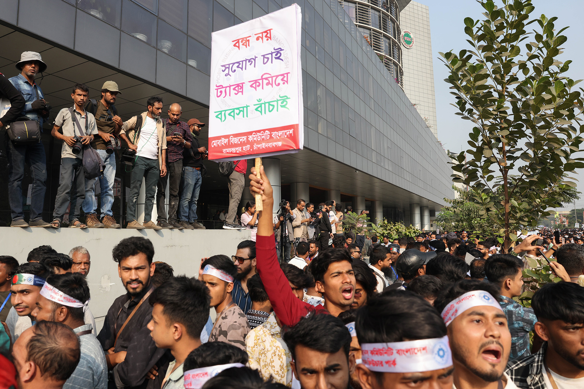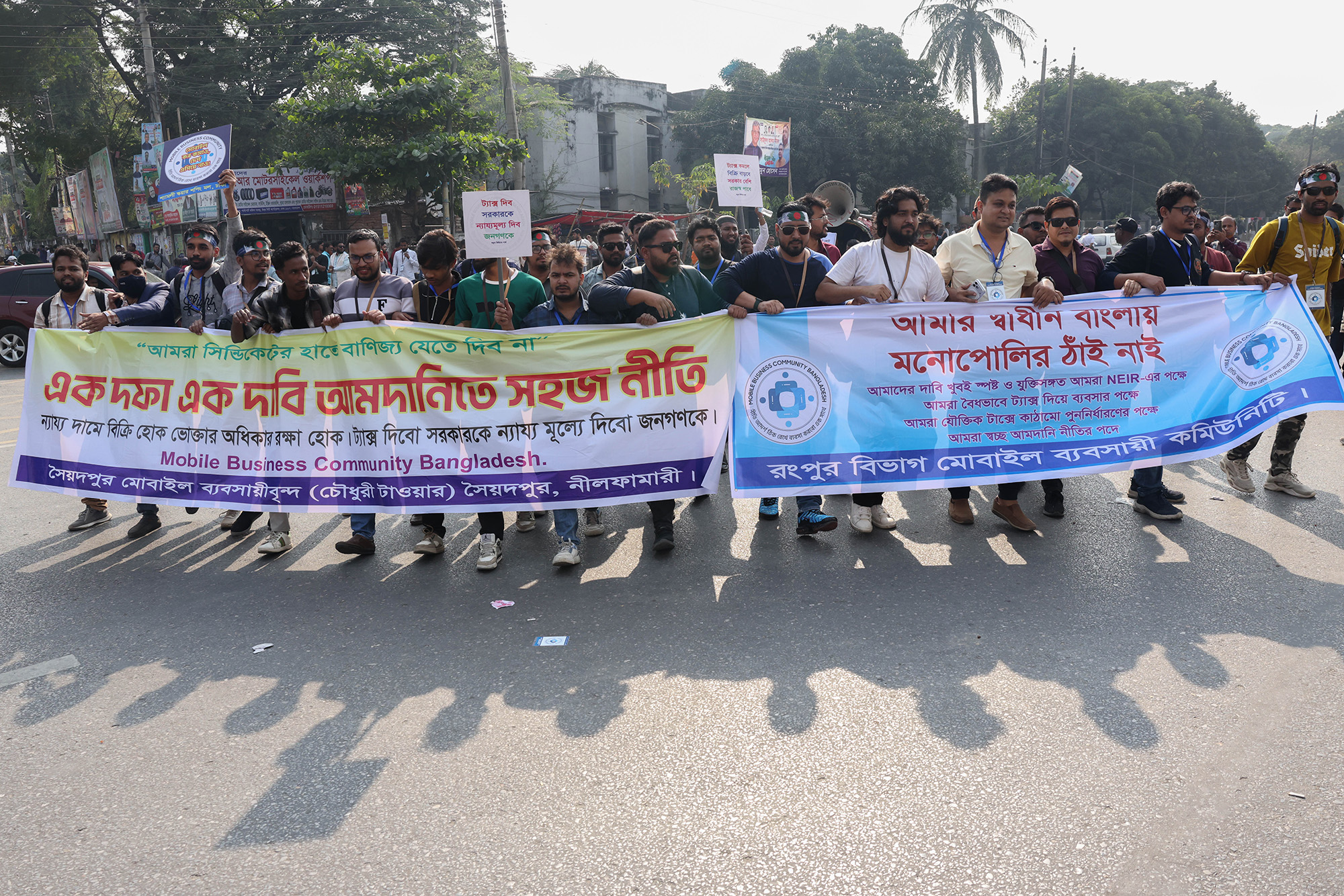 ফোন ব্যবসায়ীরা মাইকে স্লোগান দিয়ে বিটিআরসি ভবন ঘেরাও করতে যাচ্ছেন