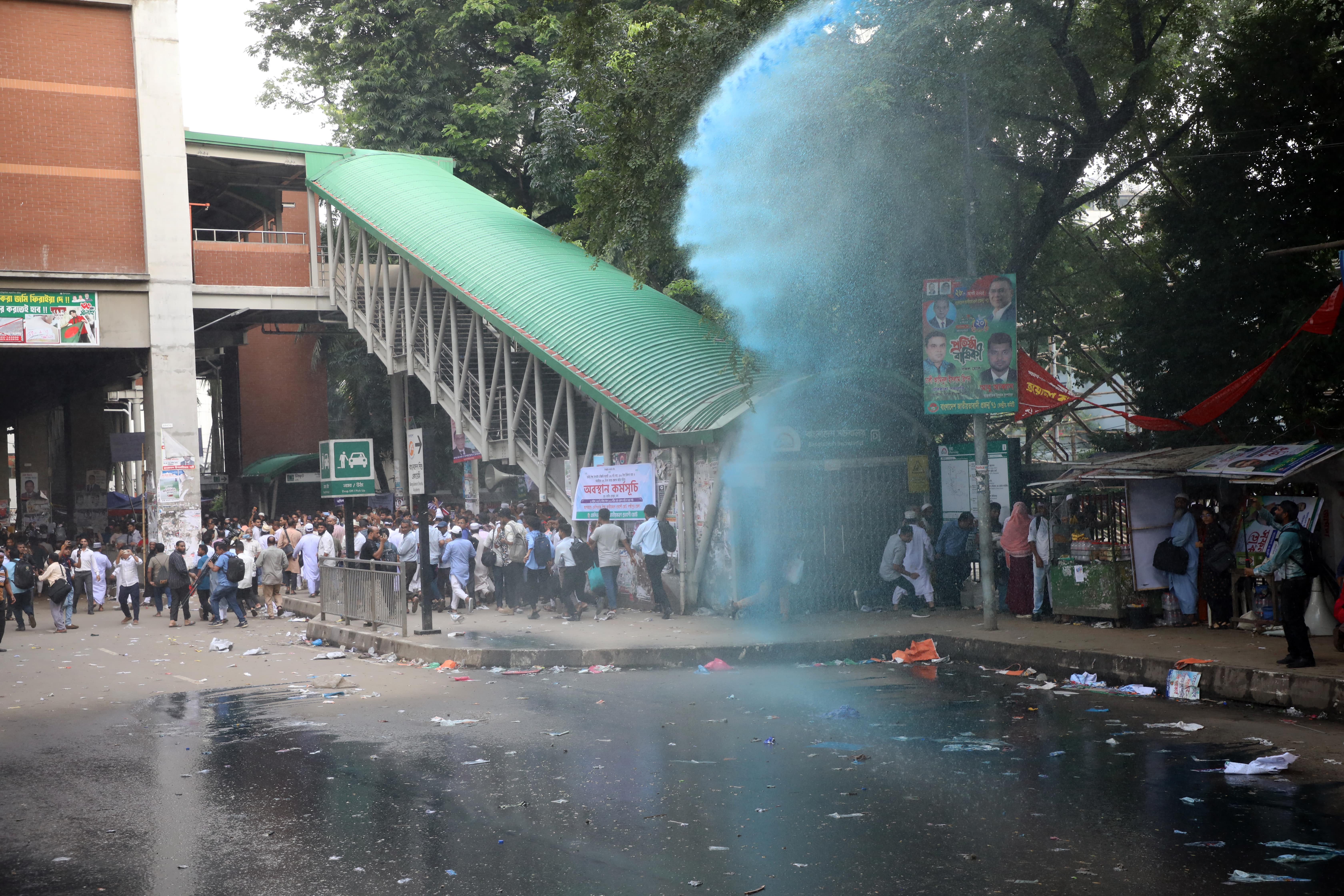 পুলিশ শিক্ষকদের ছত্রভঙ্গ করতে জলকামান নিক্ষেপ করে। স্ট্রিম ছবি