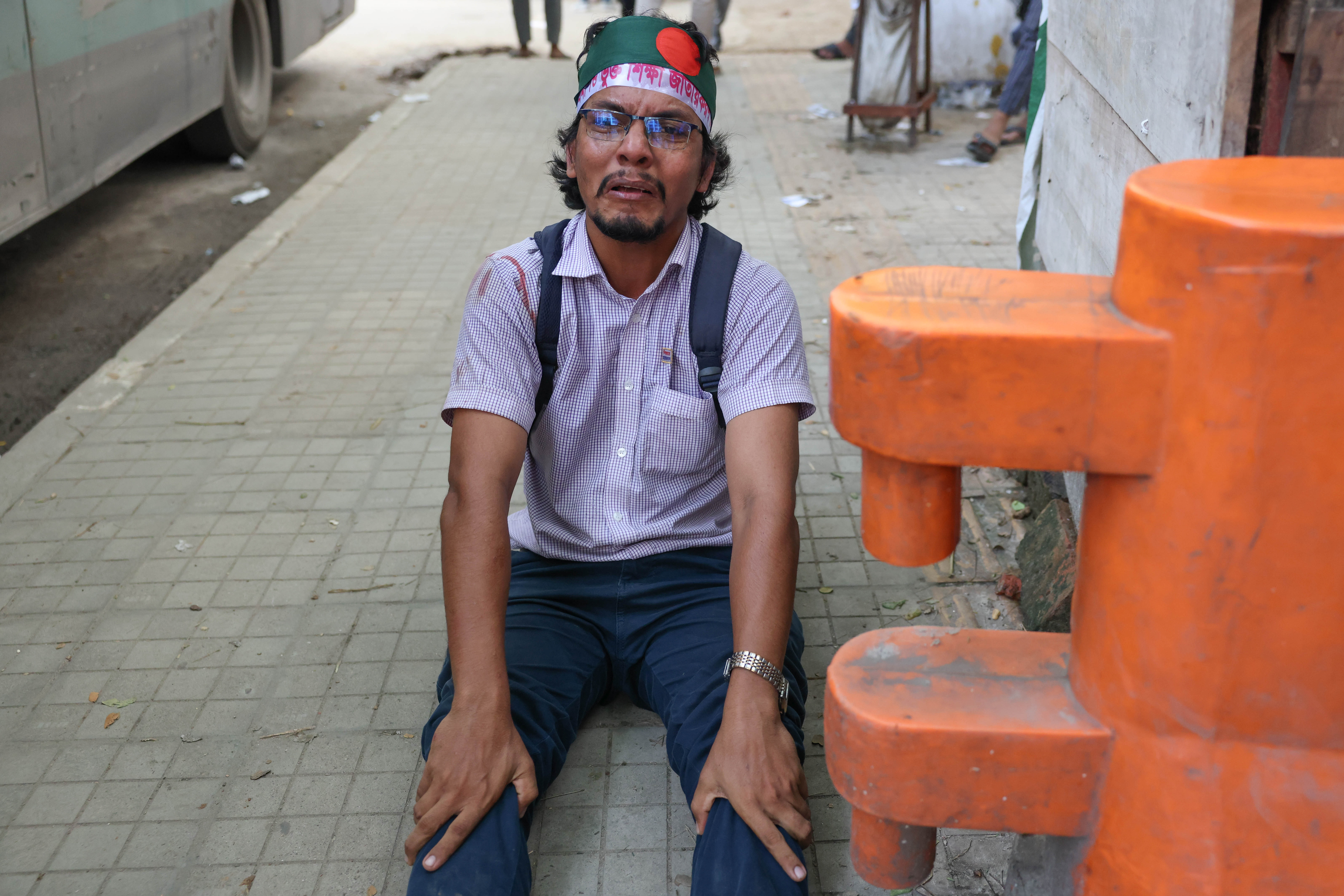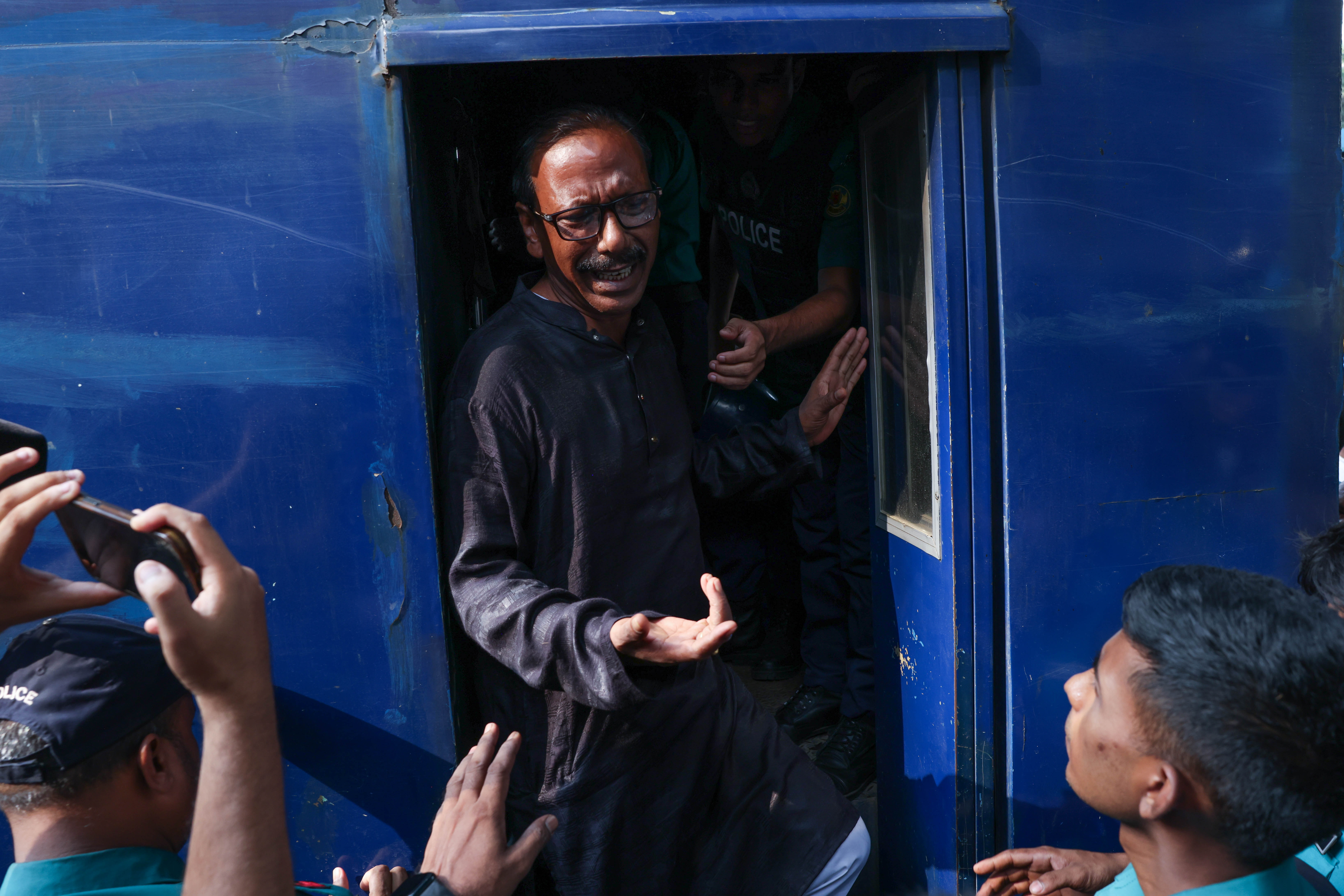 প্রিজন ভ্যানে উঠে কান্নায় ভেঙ্গে পড়ে এক শিক্ষক। ছবি: আশরাফুল আলম