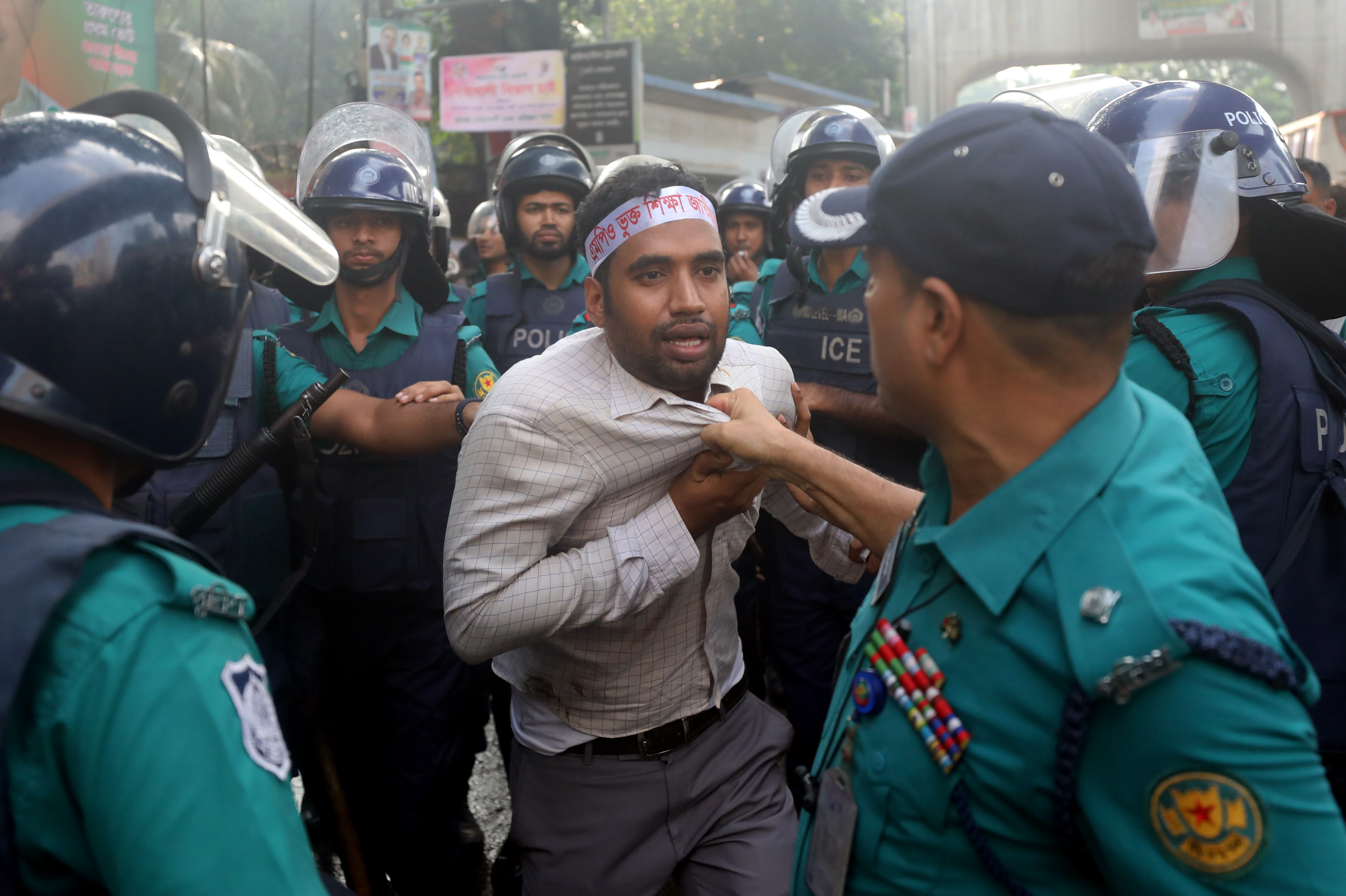 আন্দোলনরত এক শিক্ষকে আটক করছে পুলিশ। স্ট্রিম ছবি