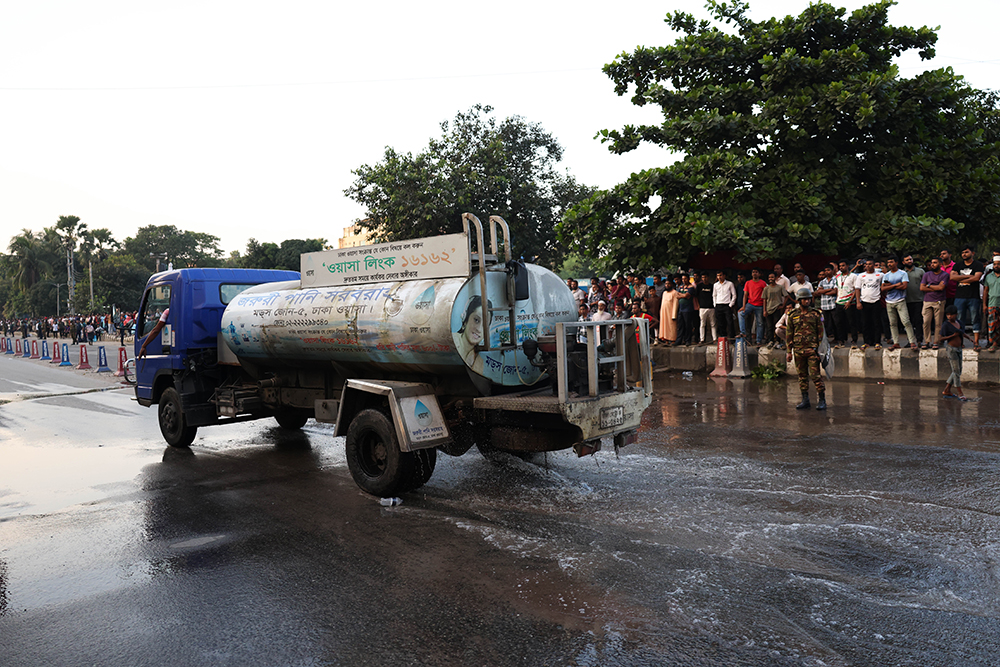 ওয়াসার গাড়ি পানি নিয়ে যাচ্ছে