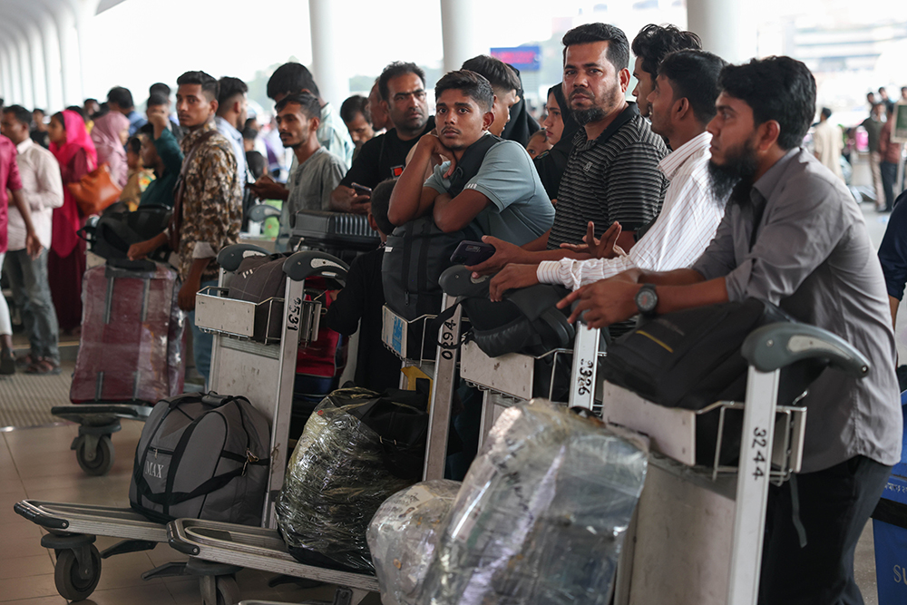টার্মিনালের প্রবেশ গেটে অপেক্ষায় যাত্রীরা