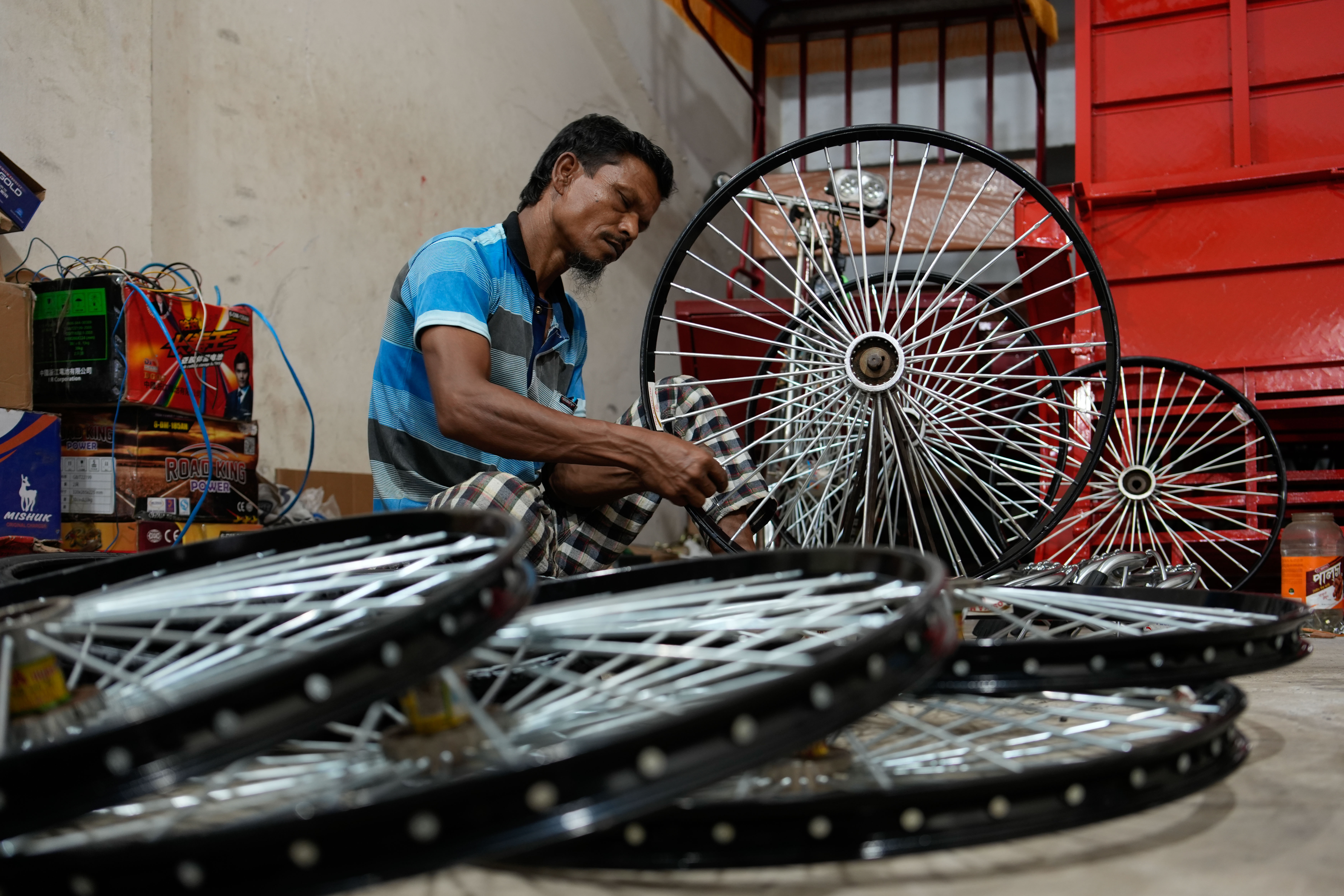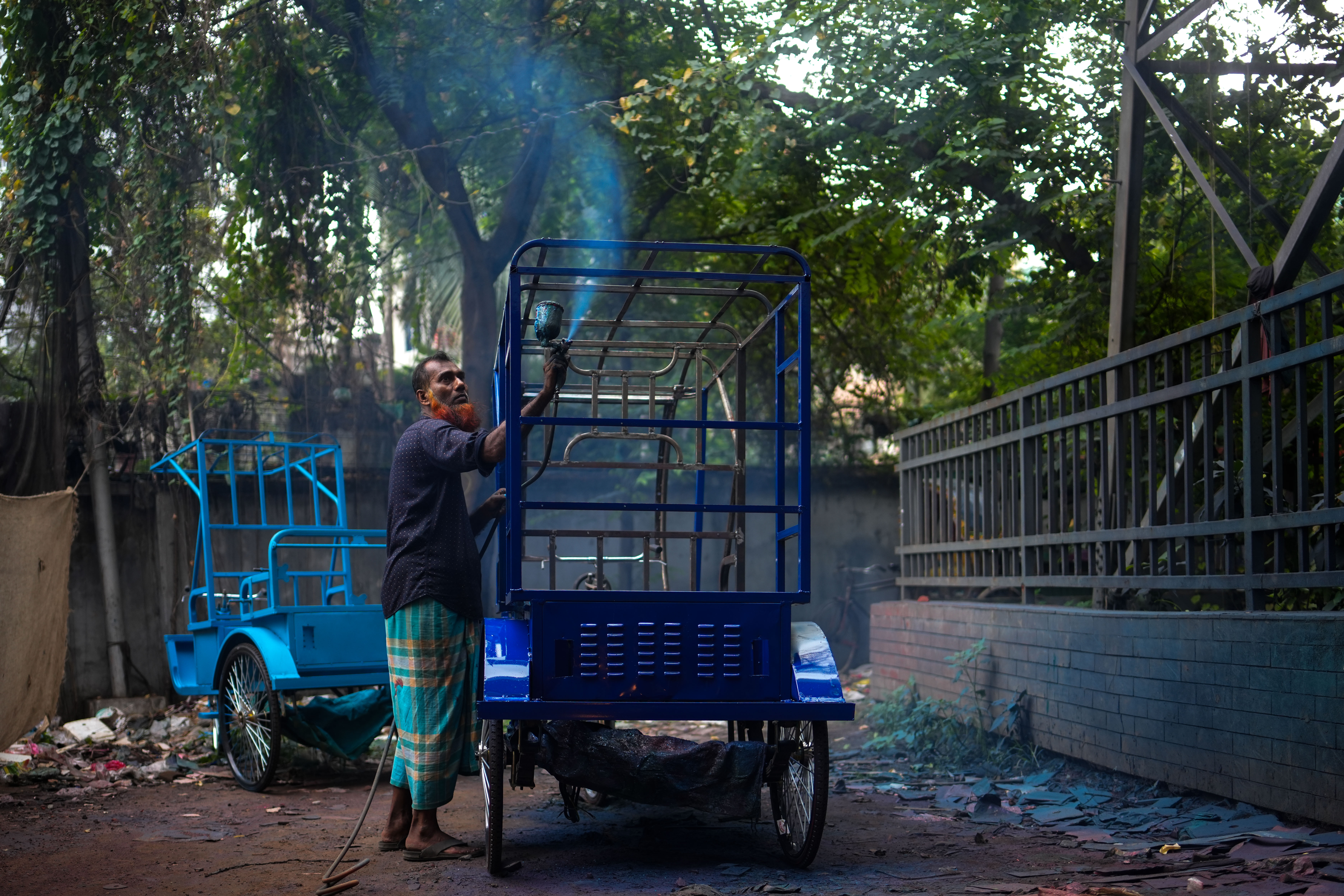 রাজধানীর কমলাপুর স্টেডিয়াম এলাকায় চলছে ব্যাটারি চালিত অটোরিকশা তৈরির কাজ। ছবি: নয়ন কর
