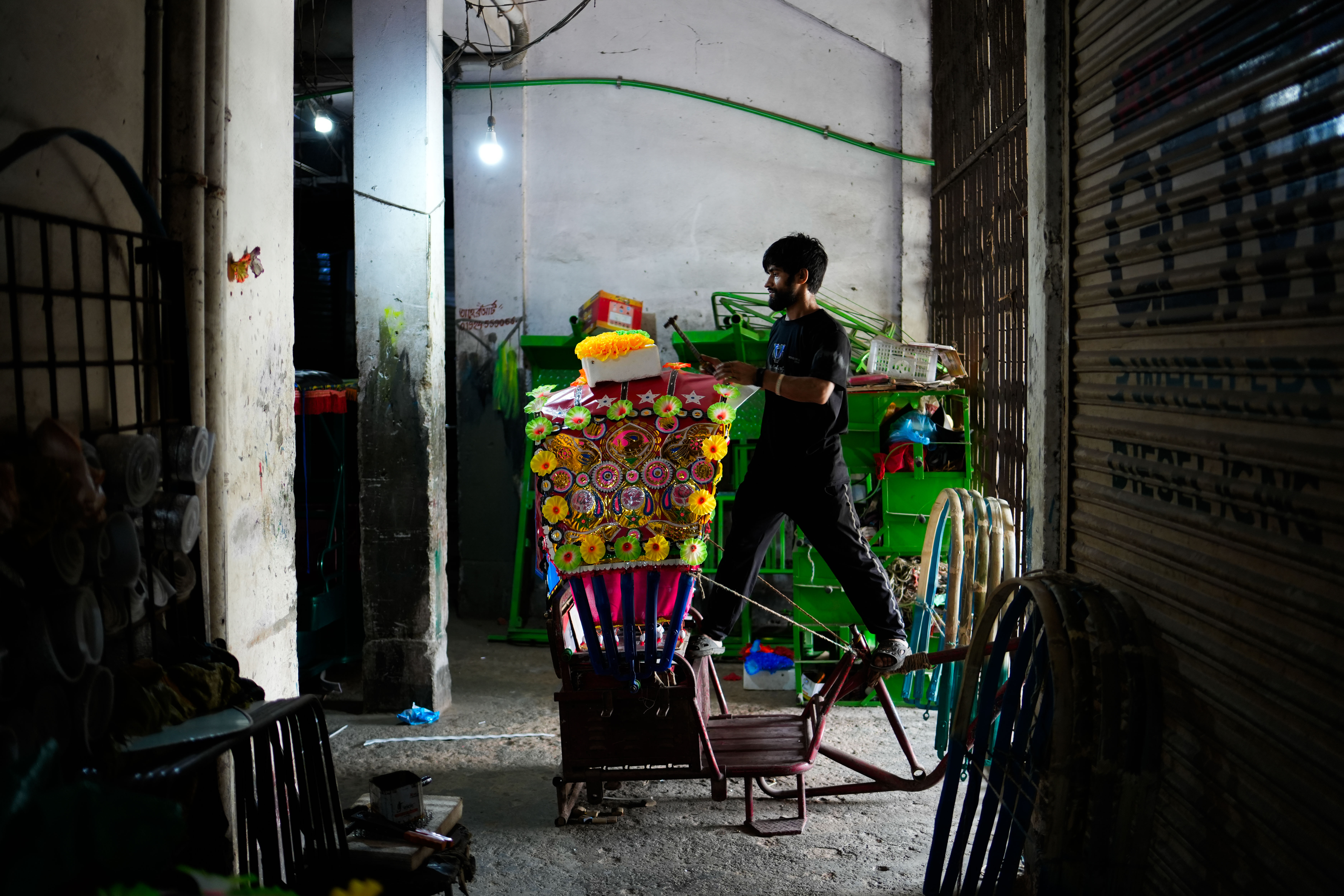 গ্রাহকের চাহিদা অনুযায়ী সাজানো হয় ব্যাটারি চালিত অটোরিকশা। ছবি: নয়ন কর