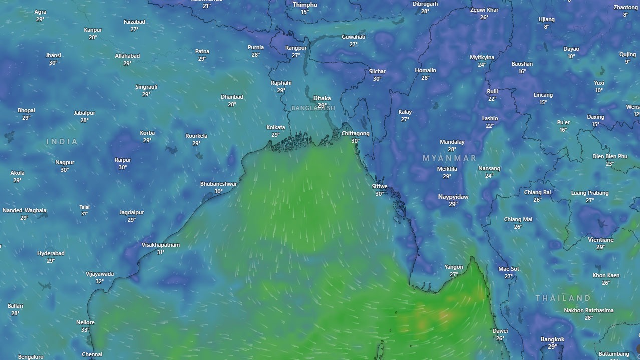 বঙ্গোপসাগরের ভারতের পশ্চিমবঙ্গ ও বাংলাদেশের পশ্চিমাংশে অবস্থানরত লঘুচাপটি বর্তমানে দুর্বল ও গুরুত্বহীন হয়ে পড়েছে। অন্যদিকে, পূর্ব-মধ্য বঙ্গোপসাগর ও তৎসংলগ্ন মিয়ানমার উপকূলে একটি নতুন লঘুচাপ সৃষ্টি হয়েছে।