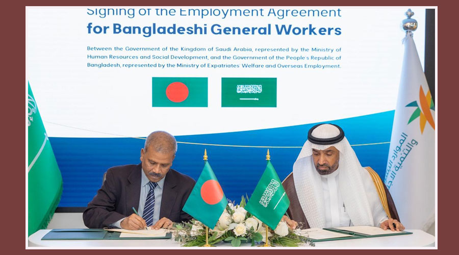 প্রথমবারের মতো সাধারণ কর্মী নিয়োগে সৌদি আরবের সঙ্গে বাংলাদেশের একটি চুক্তি স্বাক্ষর হয়েছে। আজ (৬ অক্টোবর) রিয়াদে চুক্তিটি স্বাক্ষরিত হয় বলে সংবাদ বিজ্ঞপ্তিতে জানানো হয়।