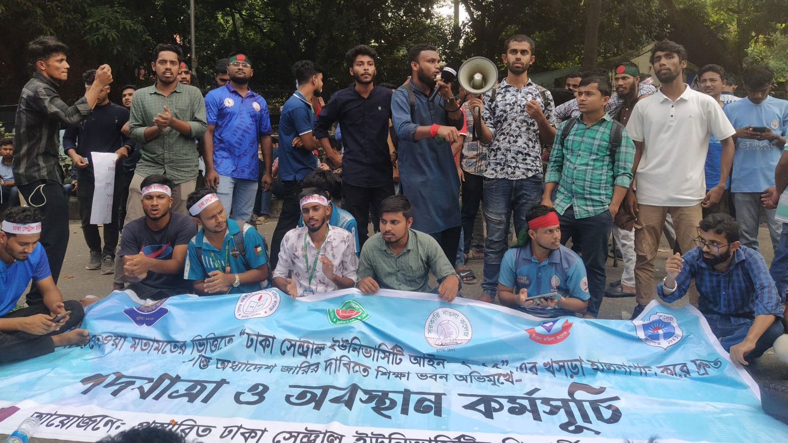 ঢাকার সাত সরকারি কলেজ একীভূত করে প্রস্তাবিত ‘ঢাকা সেন্ট্রাল ইউনিভার্সিটি’র চূড়ান্ত অধ্যাদেশ জারির দাবিতে শিক্ষা ভবনের সামনে অবস্থান নিয়েছেন শিক্ষার্থীরা। সেখানে বিক্ষোভ করছেন তাঁরা।