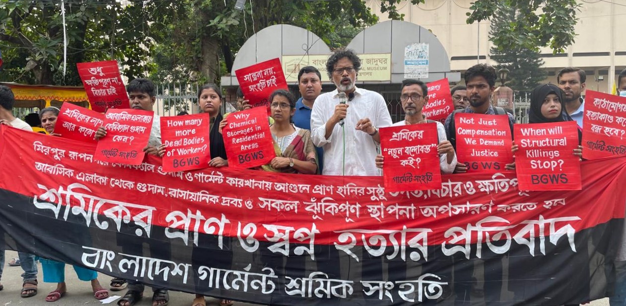 উল্লেখ্য, গত ১৪ অক্টোবর মিরপুরের শিয়ালবাড়িতে একটি পাঁচতলা পোশাক কারখানা ও সংলগ্ন রাসায়নিক গুদামে ভয়াবহ অগ্নিকাণ্ডে অন্তত ১৬ জন শ্রমিকের মৃত্যু হয় এবং আরও অনেকে আহত হন।