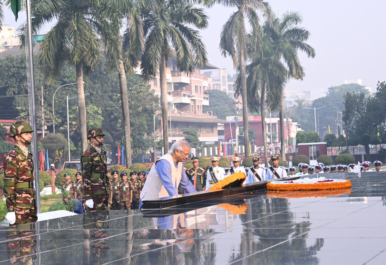 যথাযথ মর্যাদার মধ্য দিয়ে আজ শুক্রবার (২১ নভেম্বর) সশস্ত্র বাহিনী দিবস পালিত হচ্ছে। দিবসটি উপলক্ষে আজ সকালে ঢাকা সেনানিবাসের শিখা অনির্বাণে মহান স্বাধীনতাযুদ্ধে আত্মোৎসর্গকারী সশস্ত্র বাহিনীর সদস্যদের স্মৃতির প্রতি শ্রদ্ধা জানিয়ে পুষ্পস্তবক অর্পণ করেন প্রধান উপদেষ্টা অধ্যাপক মুহাম্মদ ইউনূস। এ ছাড়া দিবসটি উপলক্ষে রাষ্ট্রপতি ও সশস্ত্র বাহিনীর সর্বাধিনায়ক মো. সাহাবুদ্দিন এবং প্রধান উপদেষ্টা অধ্যাপক মুহাম্মদ ইউনূস পৃথক বাণী দিয়েছেন।