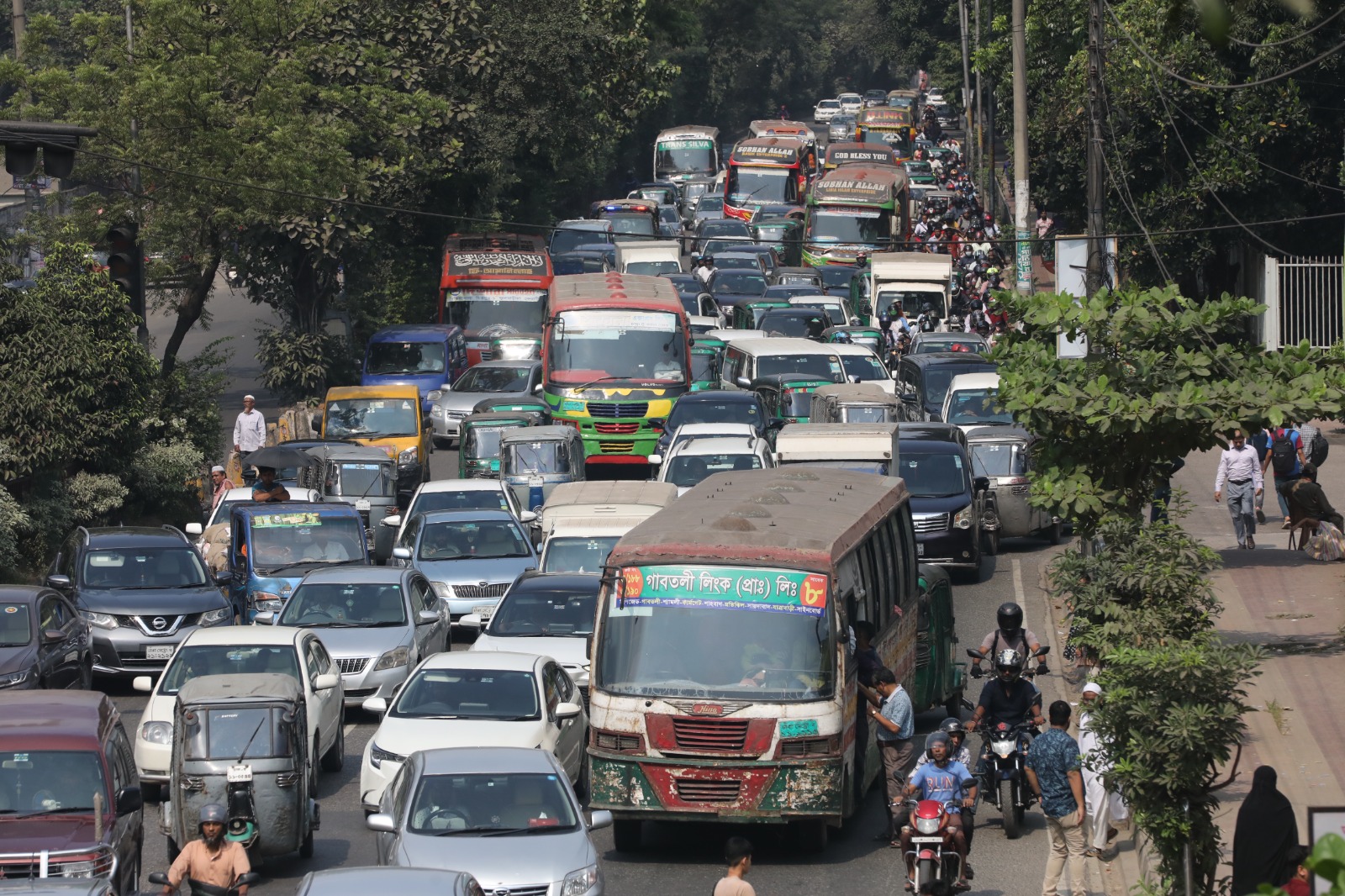 রাজধানীর বাটা সিগনাল মোড় থেকে ঢাকা বিশ্ববিদ্যালয়ের টিএসসি। এমনিতে দূরত্ব খুব বেশি নয়। কিন্তু আজ যেন ভিন্ন চিত্র। পথচারীরা বলছেন, অন্যান্য দিন এ পথ পাড়ি দিতে রিকশায় সর্বোচ্চ ১৫ থেকে ২০ মিনিট লাগে, আজ অন্তত ৪০ মিনিট লাগছে। সড়কে যানবাহনের লম্বা সারি।