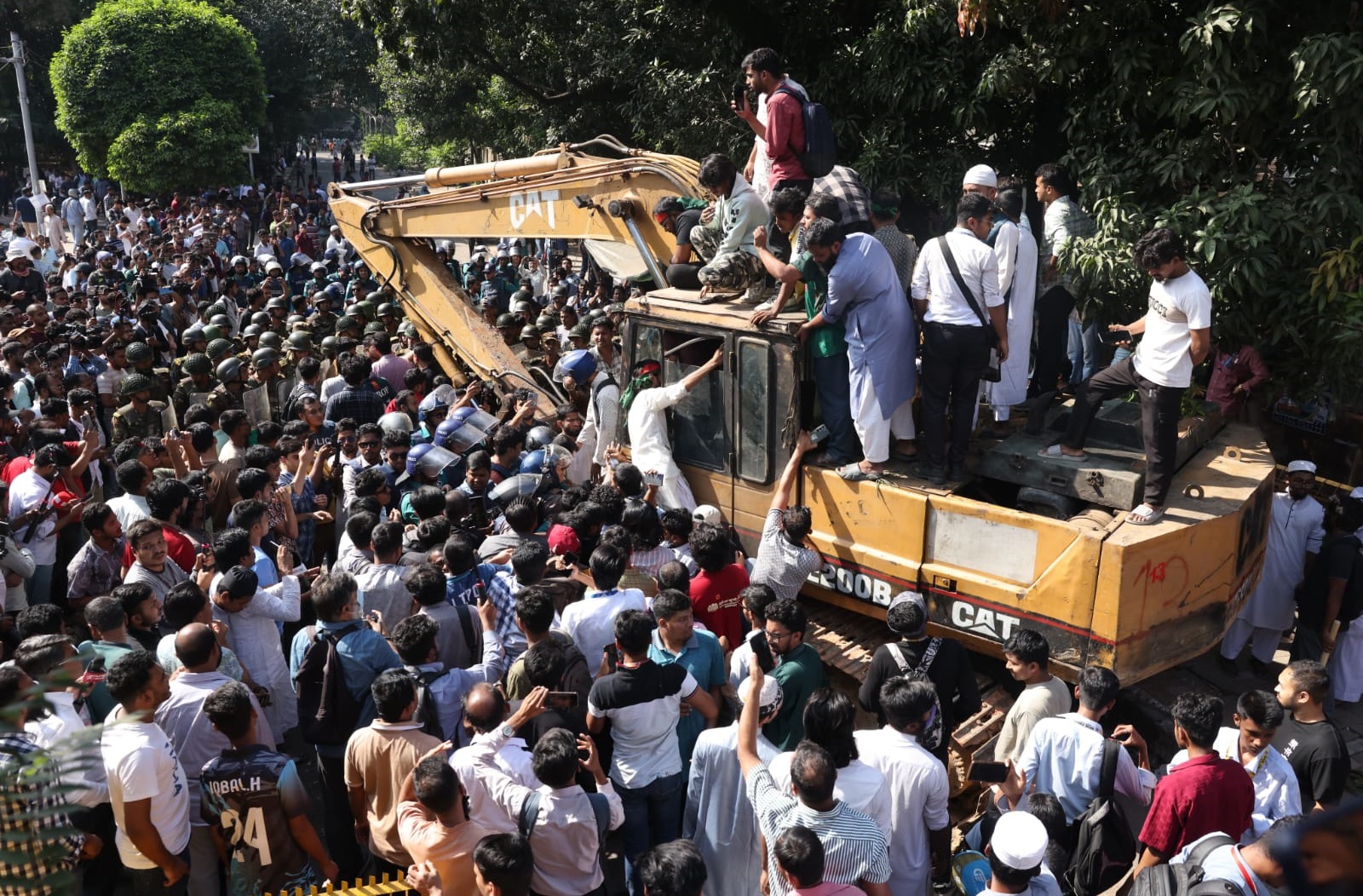 রাজধানীর ধানমন্ডি ৩২ নম্বর সড়কের শেখ মুজিবুর রহমানের বাড়ির উদ্দেশে দুইটি বুলডোজার নিয়ে ঢোকার চেষ্টা করে একদল বিক্ষোভকারী। এসময় পুলিশ ও সেনাবাহিনীর বাধার মুখে ধাওয়া-পাল্টা ধাওয়া শুরু হয়।