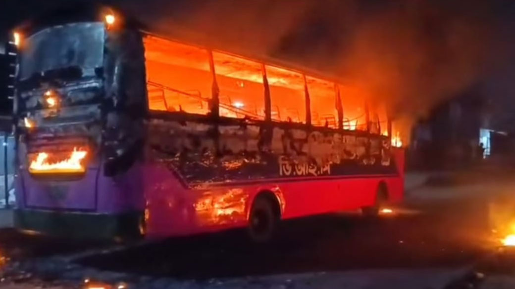 ঢাকার আশুলিয়া এলাকায় দাঁড়িয়ে থাকা একটি যাত্রীবাহী অগ্নিসংযোগ করেছে দুর্বৃত্তরা। এঘটনায় পরিবহন শ্রমিকসহ এলাকাবাসী আগুন নিয়ন্ত্রণে আনে।