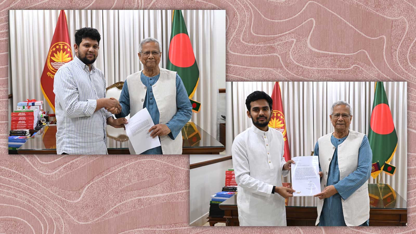 অধ্যাপক মুহাম্মদ ইউনূস আরও বলেন, ‘অন্তর্বর্তীকালীন সরকার সব সময় তোমাদের অবদান স্মরণ করবে। আমি তোমাদের সুন্দর ও শুভ ভবিষ্যৎ কামনা করি। এত অল্প সময়ে তোমরা জাতিকে যা দিয়েছো তা জাতি কখনো ভুলবে না।’