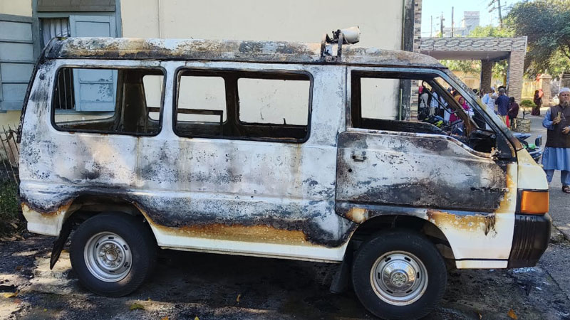 সিলেটে শহীদ শামসুদ্দিন আহমদ হাসপাতালের পার্কিংয়ে দাঁড়িয়ে থাকা একটি সরকারি অ্যাম্বুলেন্সে আগুন দিয়েছে দুর্বৃত্তরা। রোববার গভীর রাতে এই ঘটনা ঘটে বলে মহানগর পুলিশের উপকমিশনার (গণমাধ্যম) মো. সাইফুল ইসলাম। তিনি বলেন, ‘অজ্ঞাতনামা ব্যক্তিরা আগুন দিয়েছে।