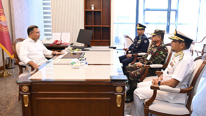 প্রধানমন্ত্রী তারেক রহমানের সঙ্গে সৌজন্য সাক্ষাৎ করেছেন তিন বাহিনীর প্রধানরা। বৃহস্পতিবার (১৯ ফেব্রুয়ারি) সকালে সচিবালয়ে প্রধানমন্ত্রীর দপ্তরে এই বৈঠক হয়।