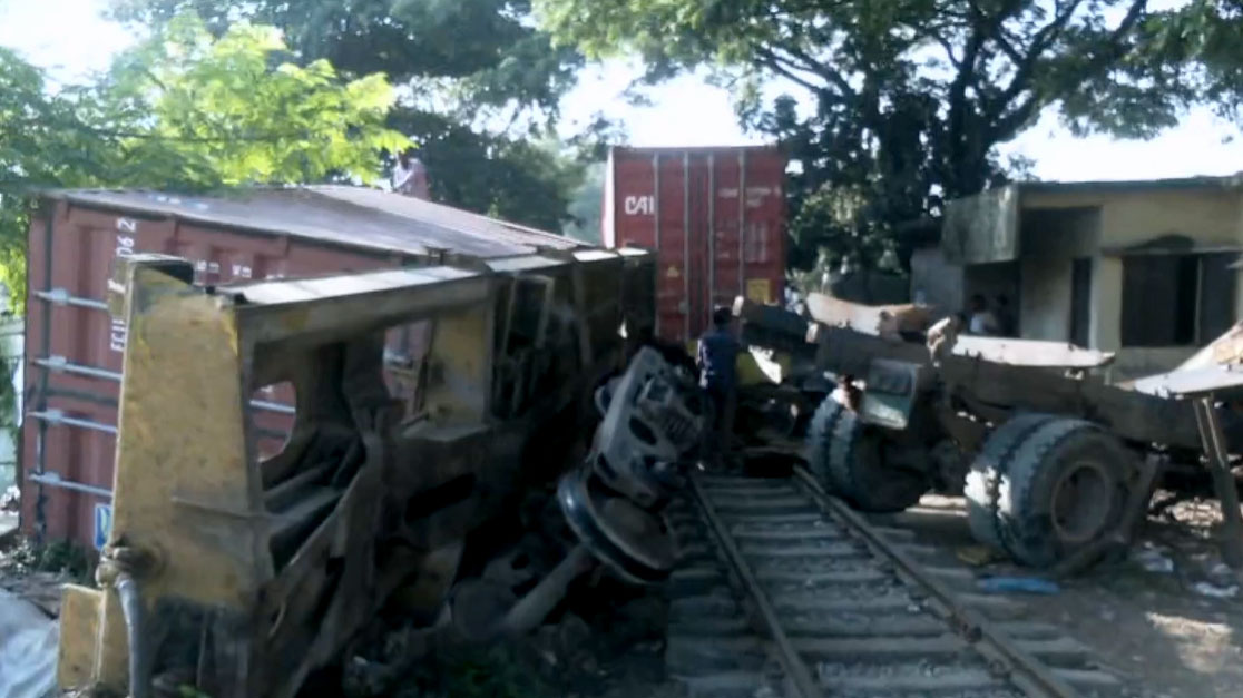 চট্টগ্রামের সাগরিকা এলাকায় মালবাহী একটি ট্রেনে চালবোঝাই একটি ট্রাক ধাক্কা দিয়েছে। এতে দুমড়ে-মুচড়ে গেছে ট্রাক, লাইনচ্যুত হয়েছে ট্রেন। দুর্ঘটনার ফলে মালবাহী ট্রেন চলাচল বন্ধ রয়েছে।
