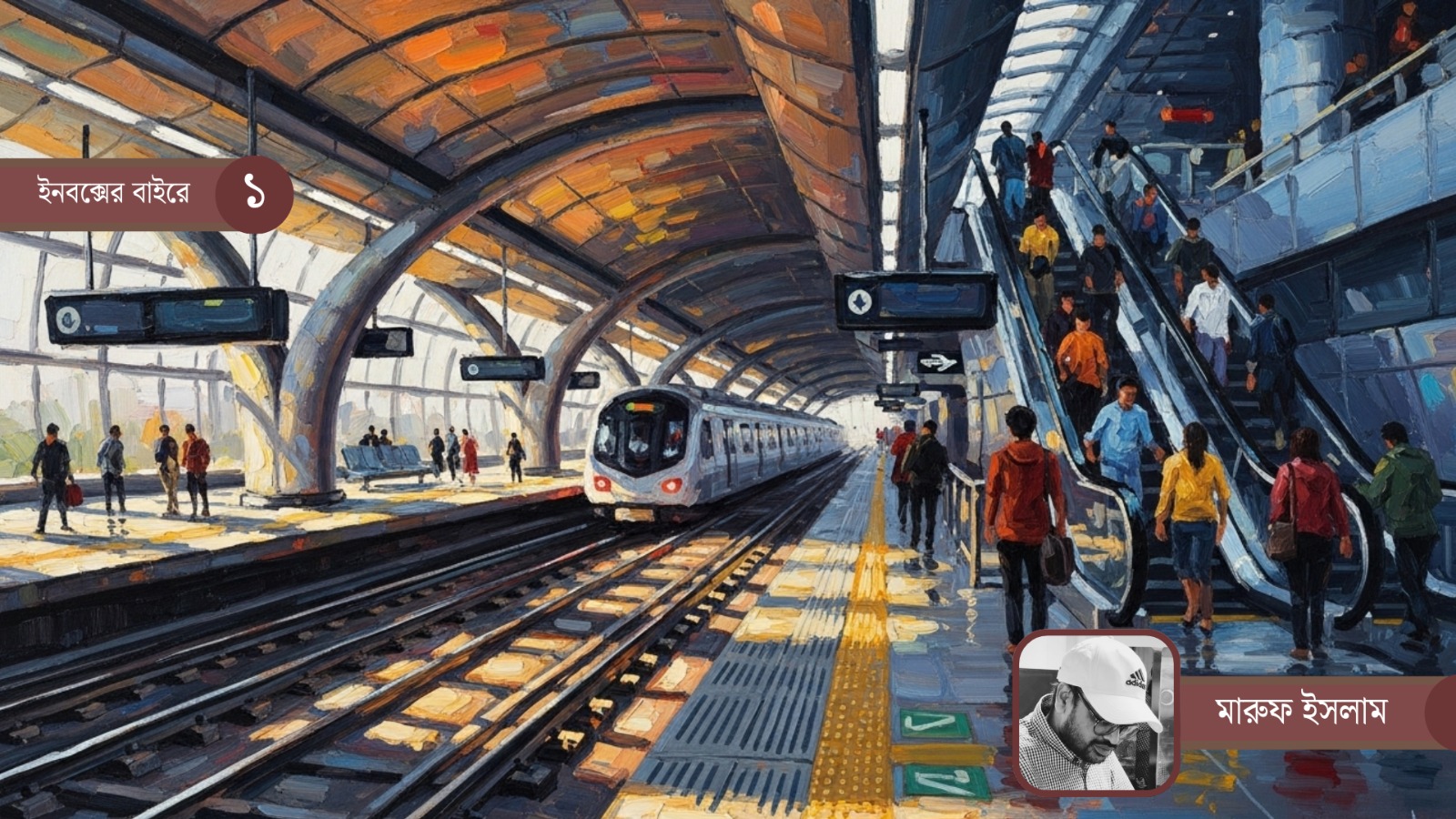 এসকেলেটরে আমার ঠিক সামনে দাঁড়িয়ে ছিলেন দুই মধ্যবয়সী ভদ্রলোক। একজনের পরনে ছাই রঙের শার্ট, আরেকজনের পিঠে কালচে ব্যাগ, সম্ভবত কোনো বেসরকারি অফিসের কর্মকর্তা। এসকেলেটর ওপরে ওঠার সময় সাধারণত মানুষ নীরবে থাকে। কিন্তু সেদিন কেন যেন তাঁদের মধ্যে একটি মৃদু আলাপ শুরু হলো। প্রথমে তা ছিল ট্রেনের সময়সূচি নিয়ে, তারপর সেটি মোড় নিলো দেশের গতি-প্রকৃতি নিয়ে। আমিও কান খাড়া করে তাঁদের আলোচনা শুনতে শুরু করলাম।