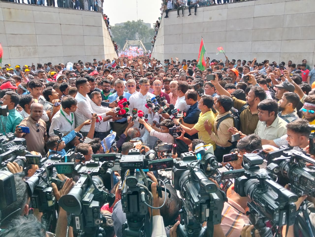 সমাবেশে মুফতি ফয়জুল করীম বলেন, ‘আজকে চুয়ান্ন বছর ওরা আমাদের লুটপাট করেছে, অত্যাচার করেছে, অবিচার করেছে, আপনারা এর পরিবর্তন চান কি চান না?’