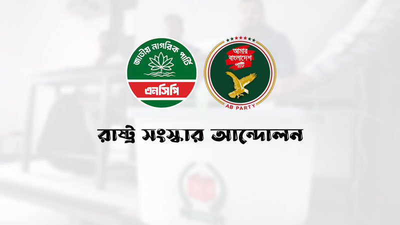 জুলাই অভ্যুত্থানের মূল অঙ্গীকার রক্ষা এবং দেশে নতুন রাজনৈতিক বন্দোবস্ত বিনির্মাণের লক্ষ্যে এনসিপিসহ তিন দলের আনুষ্ঠানিকভাবে ‘রাজনৈতিক ও নির্বাচনী ঐক্য’ ঘোষণা আসতে যাচ্ছে। এই রাজনৈতিক ও নির্বাচনী ঐক্যের দলগুলো হলো— জাতীয় নাগরিক পার্টি (এনসিপি), রাষ্ট্র সংস্কার আন্দোলন এবং আমার বাংলাদেশ পার্টি।