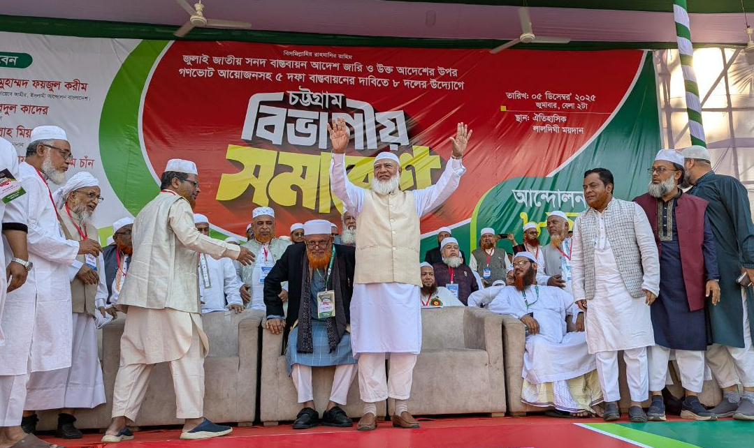 আজ শুক্রবার (৫ ডিসেম্বর) চট্টগ্রামের লালদিঘীর ময়দানে আয়োজিত আট দলের বিভাগীয় সমাবেশে এসব মন্তব্য করেছেন তিনি। কয়েকমাস ধরে বাংলাদেশ জামায়াতে ইসলামী ও ইসলামী আন্দোলনসহ আট অভিন্ন দাবিতে আন্দোলন করছে। এরই অংশ হিসেবে আট দলের শীর্ষ নেতাদের উপস্থিতিতে লালদিঘীর ময়দানে আজ চট্টগ্রাম বিভাগীয় সমাবেশ আয়োজন করা হয়।
