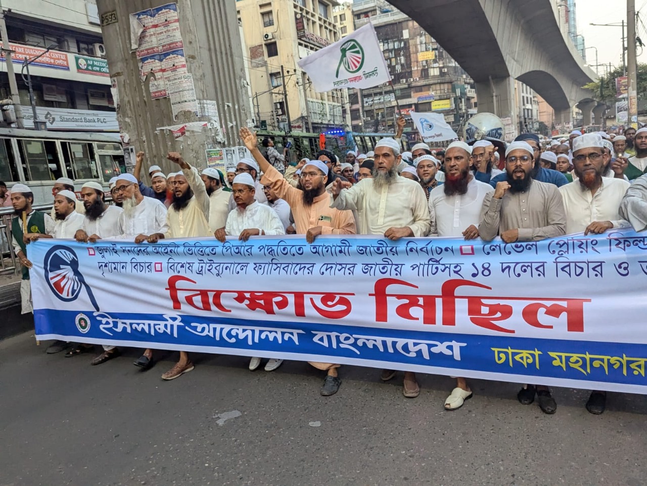 আজ সোমবার (২০ অক্টোবর) রাজধানীতে বিক্ষোভ মিছিল করবে জামায়াতসহ সমমনা সাতটি দল। যুগপৎ আন্দোলনের অংশ হিসেবে চতুর্থ পর্বের কর্মসূচি পালন করতে যাচ্ছে দলগুলো। জুলাই সনদ বাস্তবায়নের আদেশ জারি করে নভেম্বরের মধ্যে গণভোট আয়োজন করাসহ সাতটি অভিন্ন দাবিতে এই কর্মসূচি পালন করবে তারা।